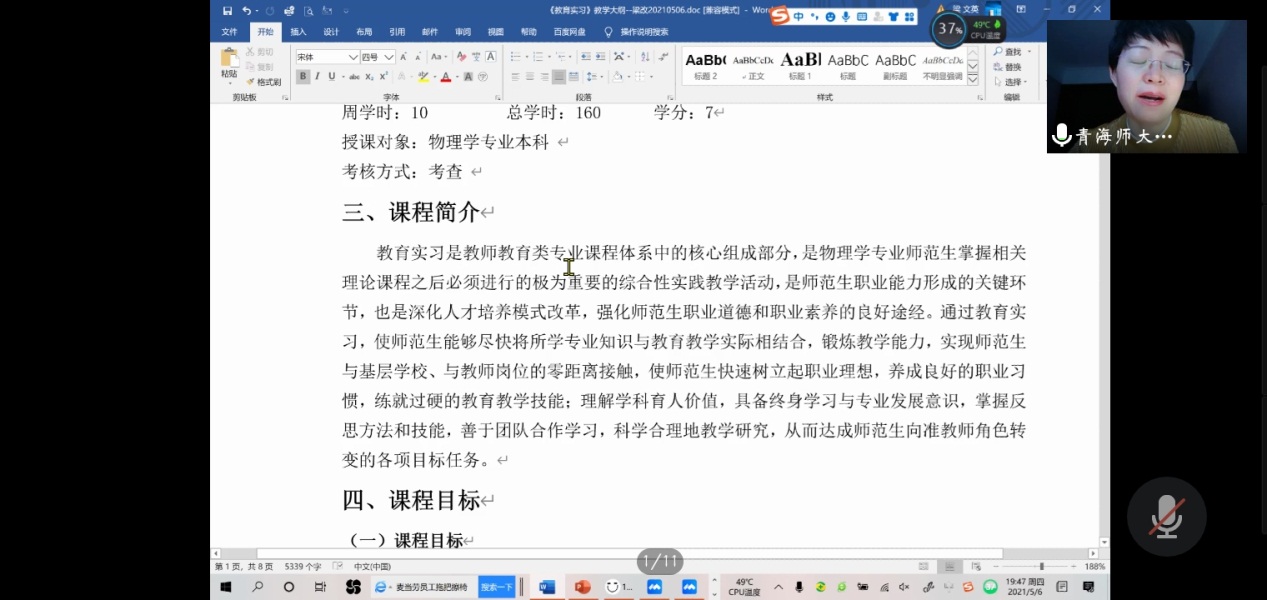为落实《青海师范大学物理学专业本科人才培养方案》,5月6日物理系副主任梁文英老师给18级物理学班安排了专门培养方案解读课,解读课采用线上教学的模式进行。